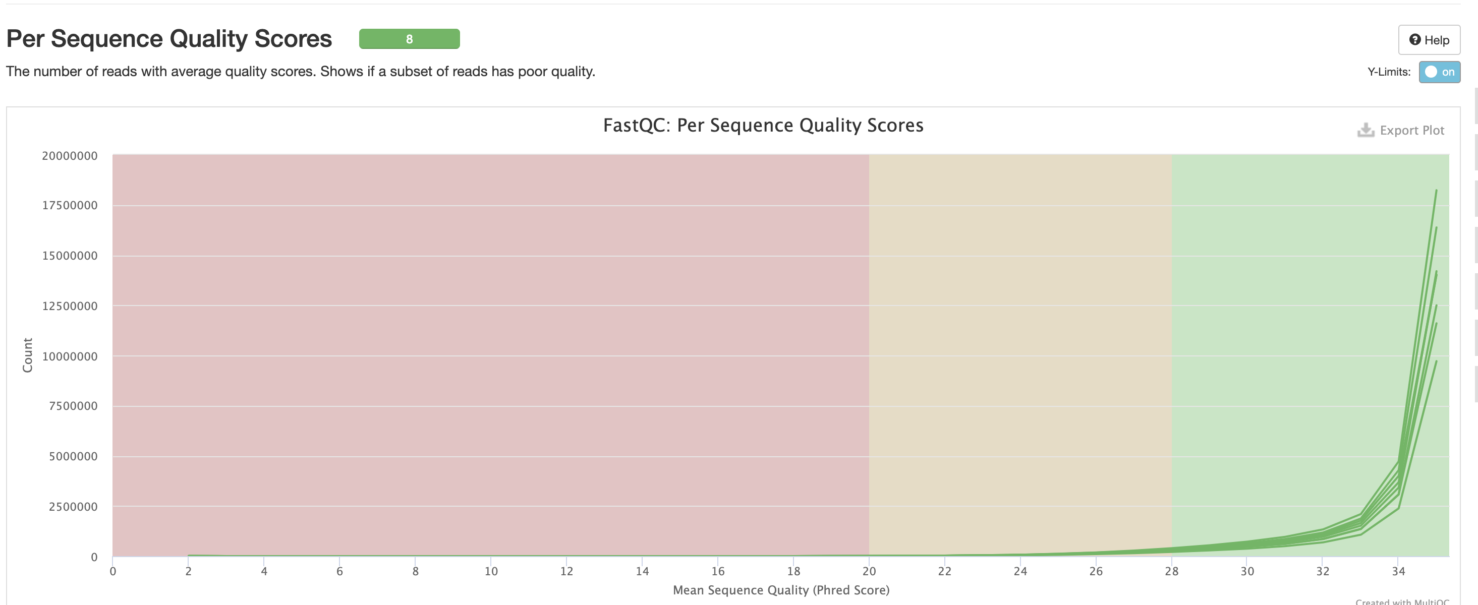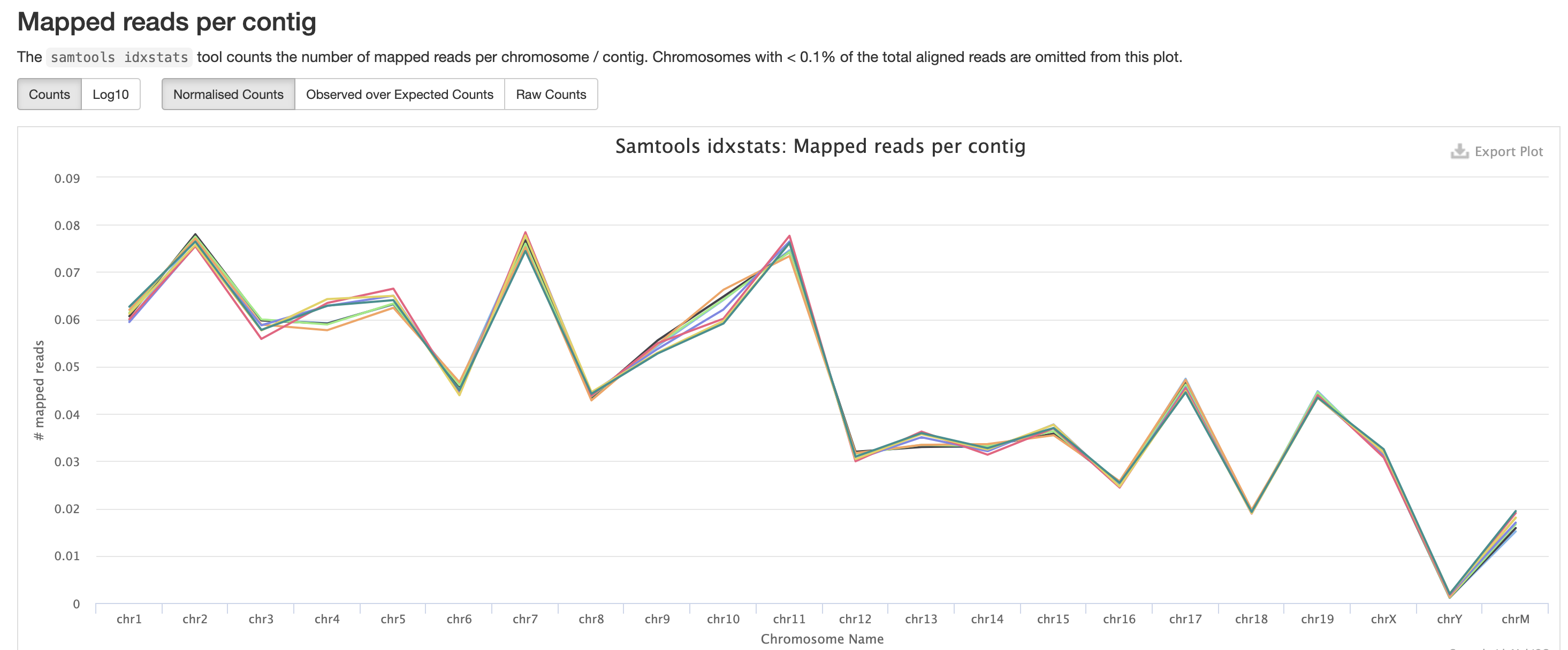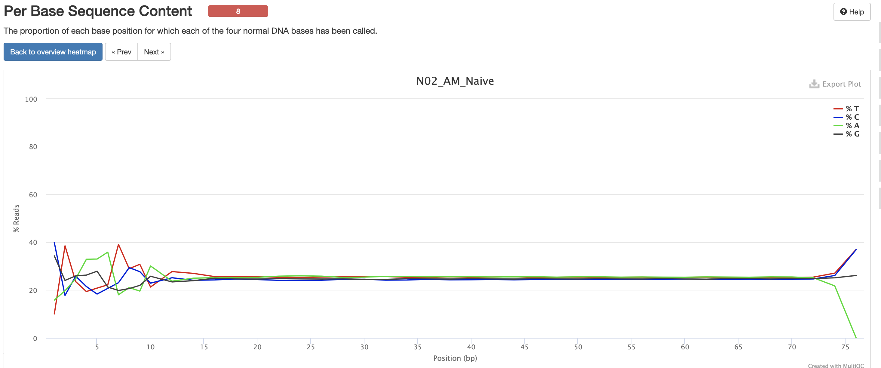 The first point of review for the workflow is the multiqc report. MultiQC is a very useful tool that aggregates a number of different tools into a single report, providing a quick way of reviewing the quality of the data to determine if there are any potential concerns.