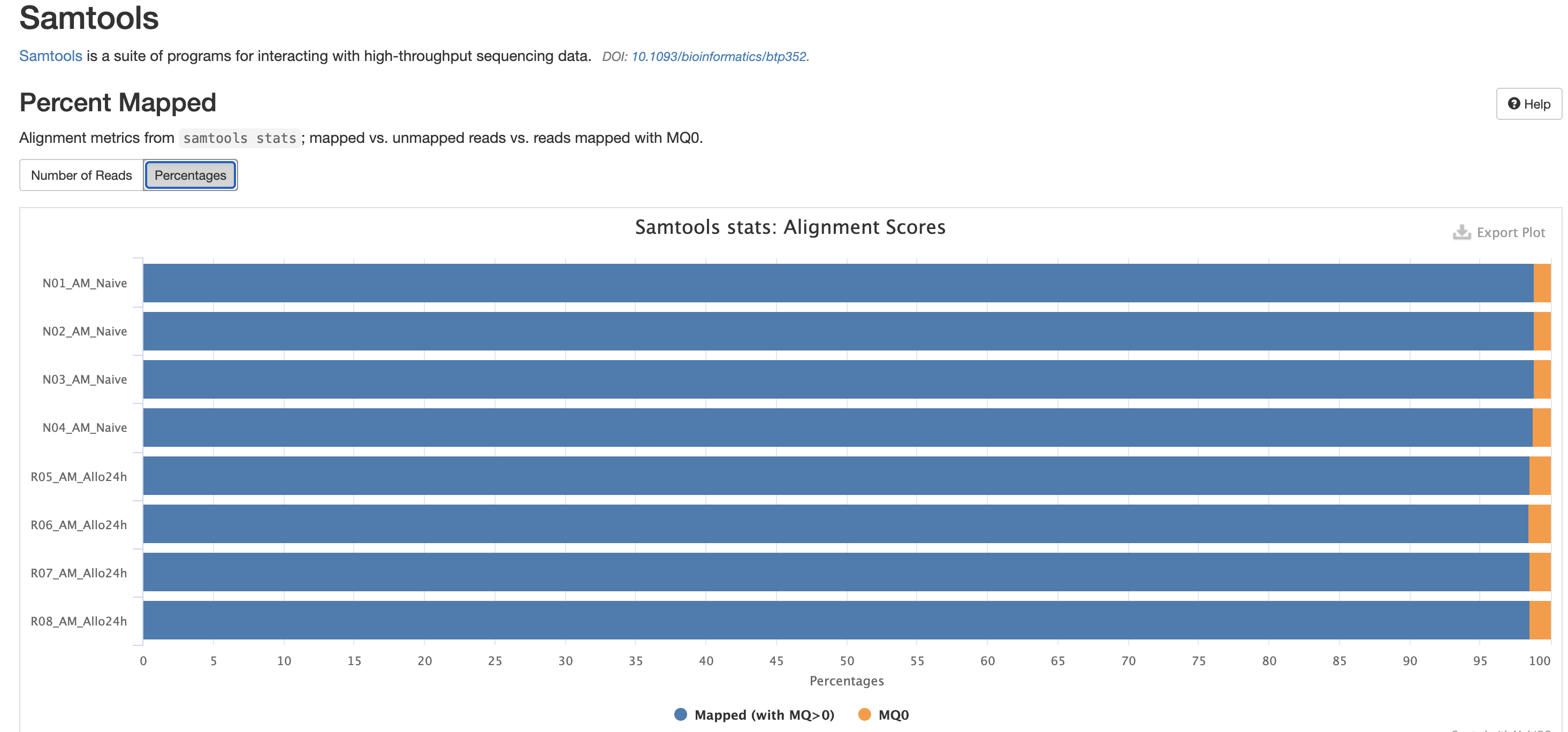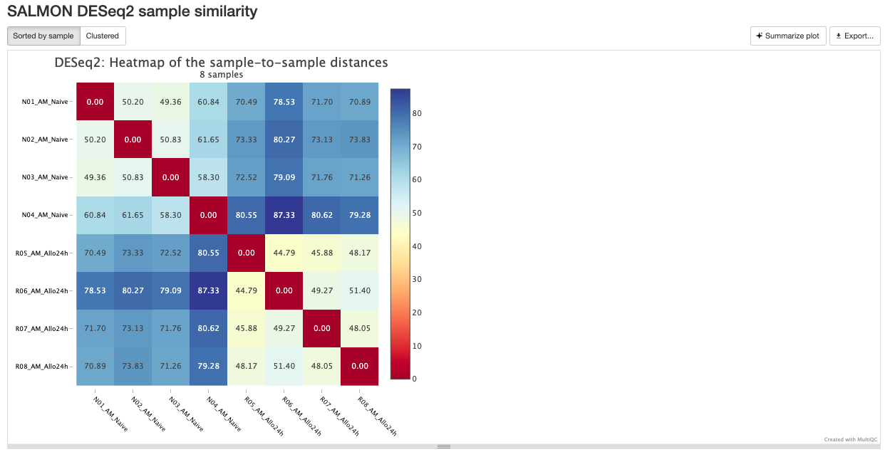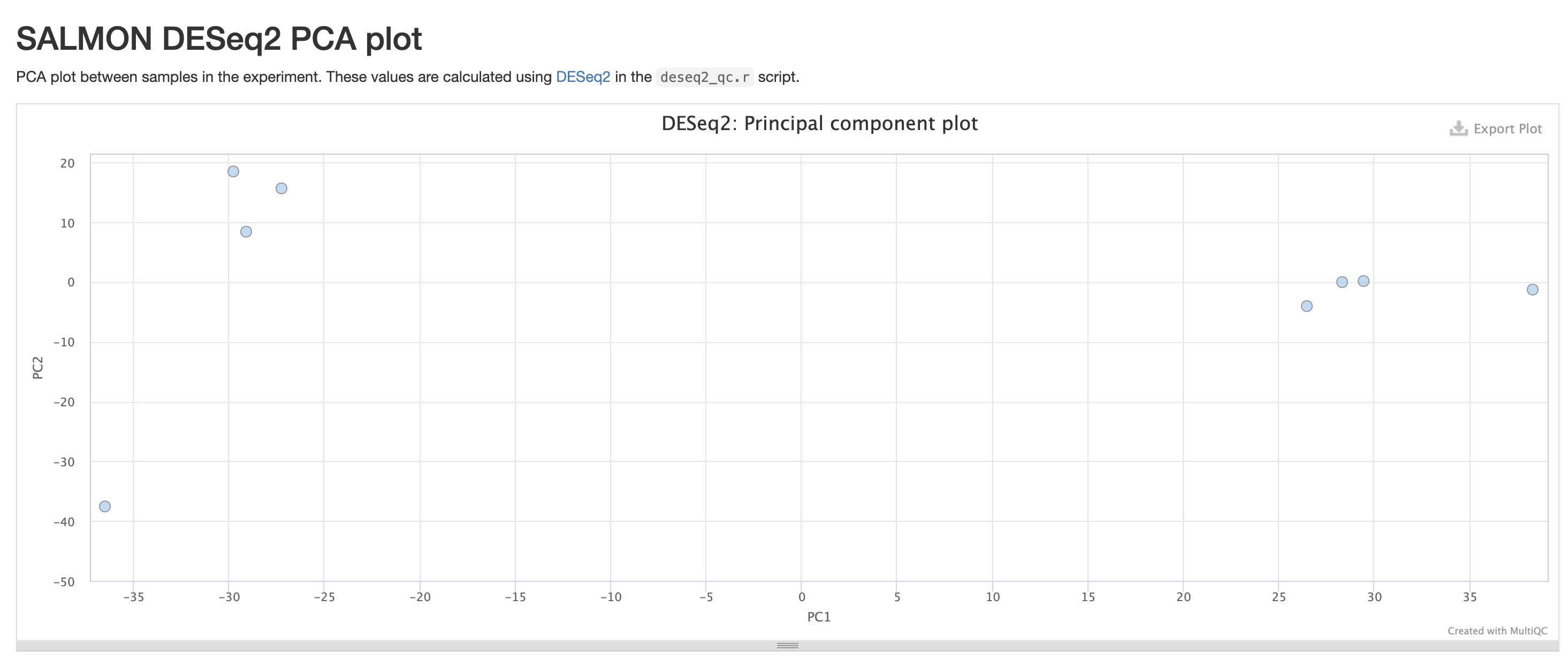 The first point of review for the workflow is the multiqc report. MultiQC is a very useful tool that aggregates a number of different tools into a single report, providing a quick way of reviewing the quality of the data to determine if there are any potential concerns.