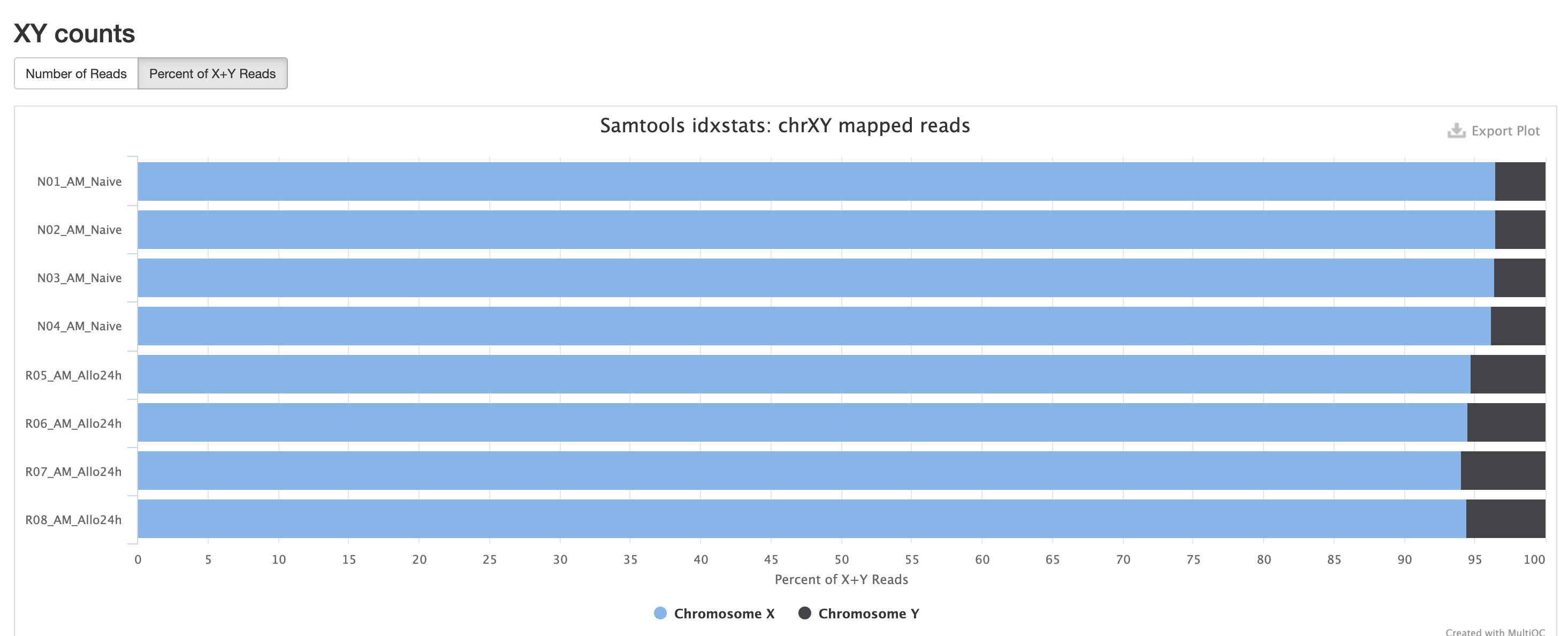 In the case of experiments involving multiple sexes of organisms, the XY count chart can be very useful for ensuring no sample swap has occurred.